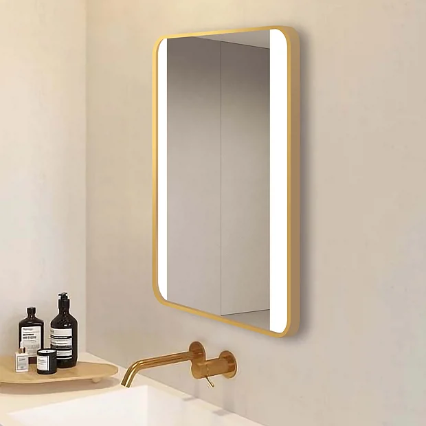 Arezzo 500 x 700 Switch Control Illuminated Strips Bathroom Mirror – Brushed Brass