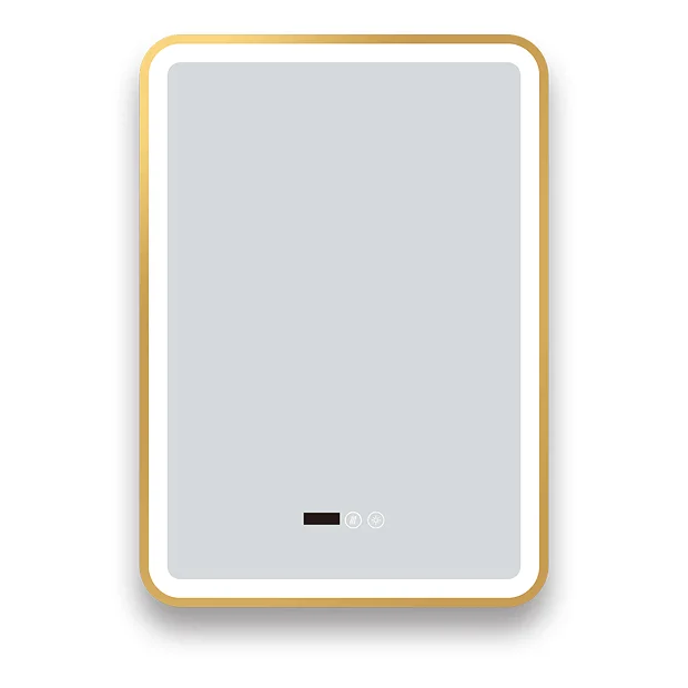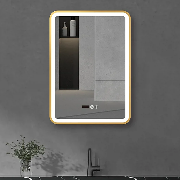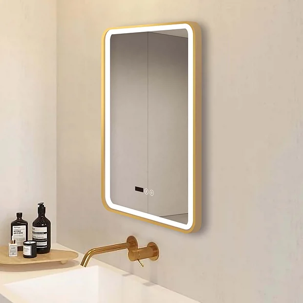 Arezzo 500 x 700mm Touch Control Illuminated Border Mirror – Dimmer, Demister, Colour Changing Light & Time Display – Brushed Brass
