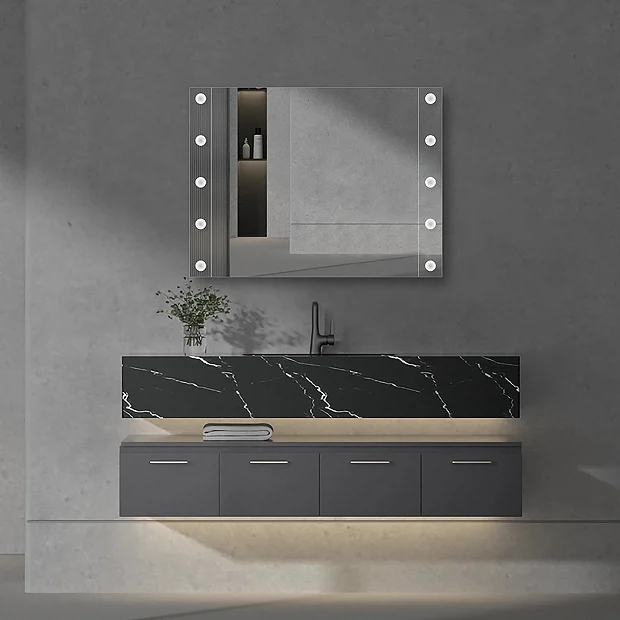 Light up your bathroom with this Arezzo Bulb LED Mirror. To activate the LED lights on this illuminated bathroom mirror, just wave your hand under the motion sensor. A de-mist pad prevents the mirror from fogging when your bathroom gets steamy from hot water.