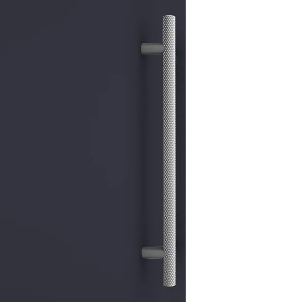 - Round knurled industrial style satin chrome bar handle