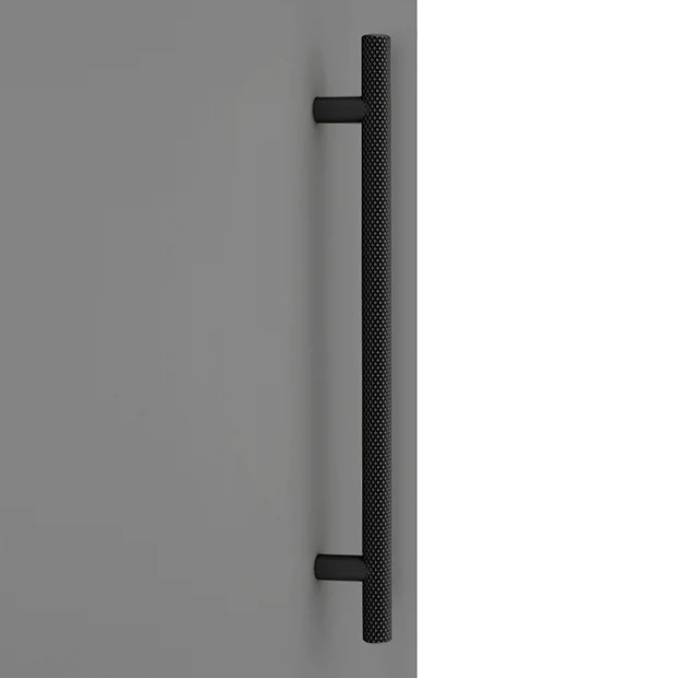 - Round knurled industrial style matt black bar handle