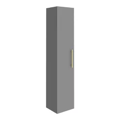 Arezzo Wall Hung Tall Storage Cabinet – Matt Grey – With Industrial Style Brushed Brass Handle