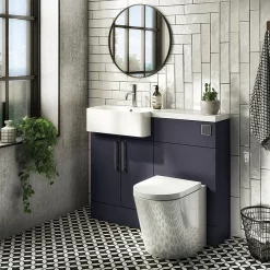 Arezzo 1100 Matt Blue Semi-Recessed Round Combination Vanity Unit (Matt Black Flush & Handles)