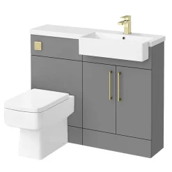 Arezzo 1100 Matt Grey Semi-Recessed Square Combination Vanity Unit (Brushed Brass Flush & Handles)