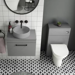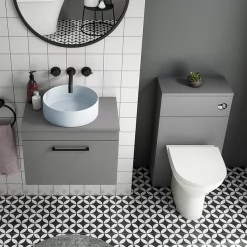 Arezzo 600 Grey Wall Hung Unit With Grey Round Counter Top Basin + Toilet Pack
