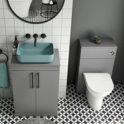 Arezzo 600 Grey Floor Standing Unit With Green Rectangular Counter Top Basin + Toilet Pack