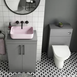 Arezzo 600 Grey Floor Standing Unit With Pink Rectangular Counter Top Basin + Toilet Pack