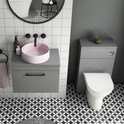 Arezzo 600 Grey Wall Hung Unit With Pink Round Counter Top Basin + Toilet Pack
