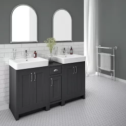 Chatsworth Traditional Graphite Double Basin Vanity + Cupboard Combination Unit