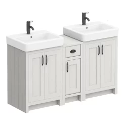 Chatsworth Traditional Grey Double Basin Vanity + Cupboard Combination Unit With Matt Black Handles