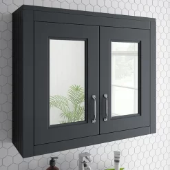 Heritage Bathroom Heritage Caversham Double Door Mirror Wall Cabinet – Graphite