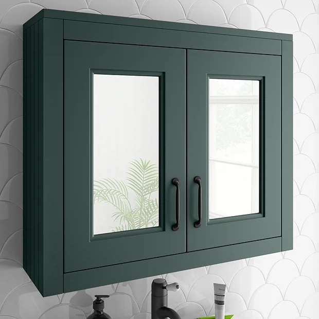 Chatsworth Green 2-Door Mirror Cabinet – 690mm Wide with Matt Black Handles
