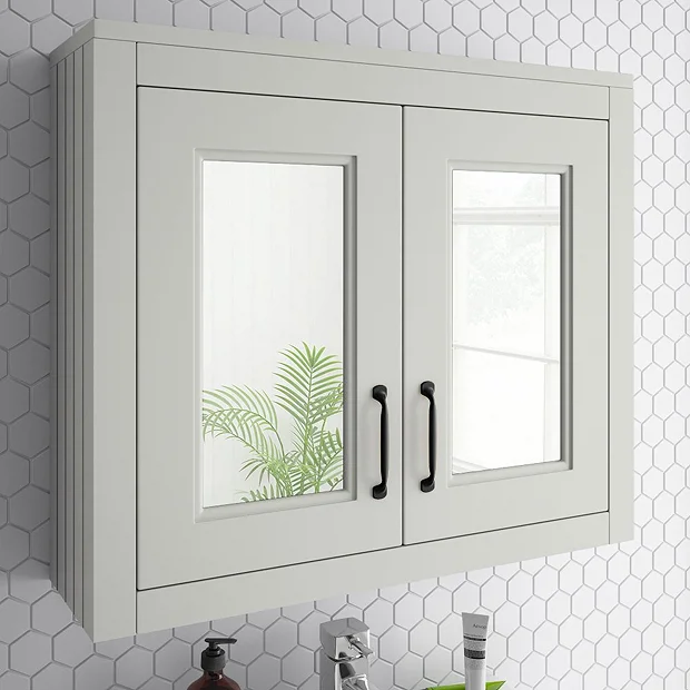 Chatsworth Grey 2-Door Mirror Cabinet – 690mm Wide with Matt Black Handles
