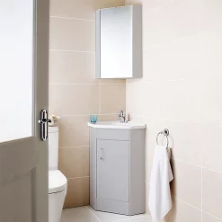 The Cove gloss light grey orner mirror cabinet, make the most of your bathroom with our practical and attractive gloss light grey furniture options. Providing a practical storage solution to suit most needs, especially where space is at a premium.