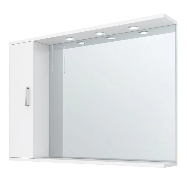 The Cove high gloss white 1050mm wide illuminated mirror cabinet, make the most of your bathroom with this attractive illuminated Mirror Cabinet to compliment your Vanity Unit. This bathroom cabinet features a soft close door, modern chrome handle & includes a Low Voltage Light.
