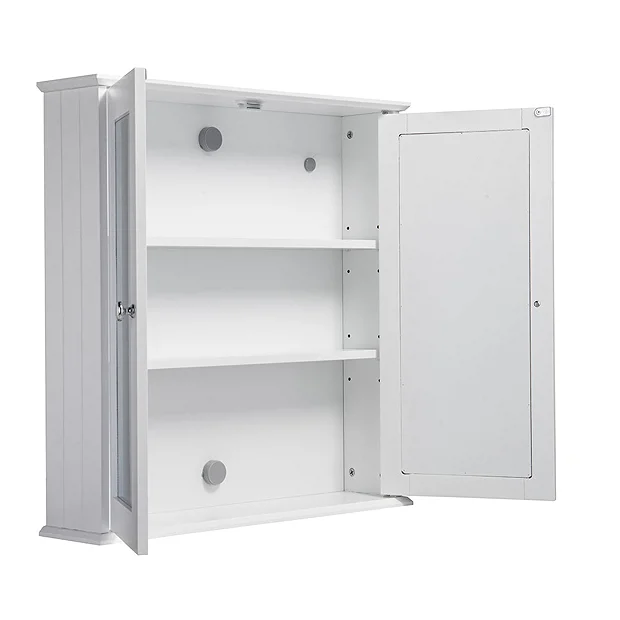 Croydex Ashby White Wooden Double Door Mirror Cabinet with FlexiFix – WC280022