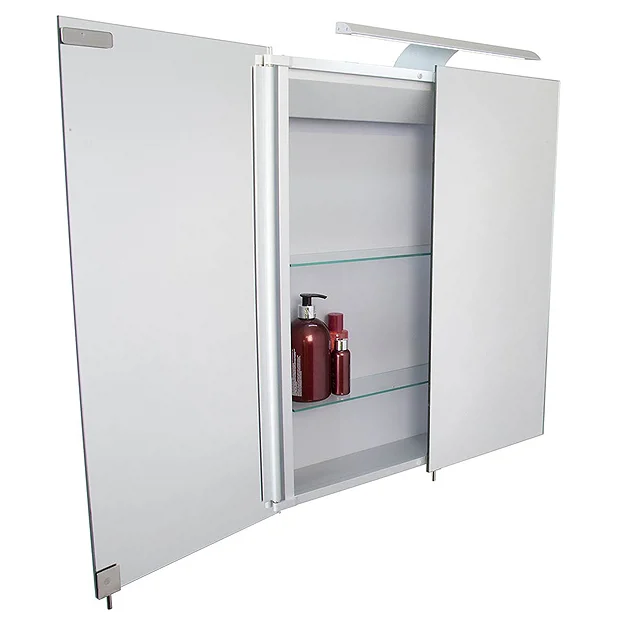 The Sudbury mirror cabinet is a double door wall hung bathroom unit that provides excellent storage capacity concealed by two mirrored doors and an overhead light. The cabinet has two internal glass shelves for storage and an integrated shaver socket suitable for electric razors, toothbrush or other low power devices. It features the innovative Hang ‘N’ Lock system, allowing large bathroom accessories to be fixed by one person. The bracket system attaches to the wall and can be adjusted with the built-in spirit level. Then just simply hang the product and lock securely in place.