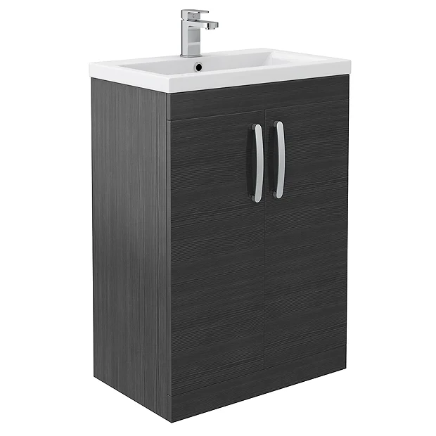(1) Floor Standing 2 Door Vanity Unit – Black Woodgrain (600 x 383mm)