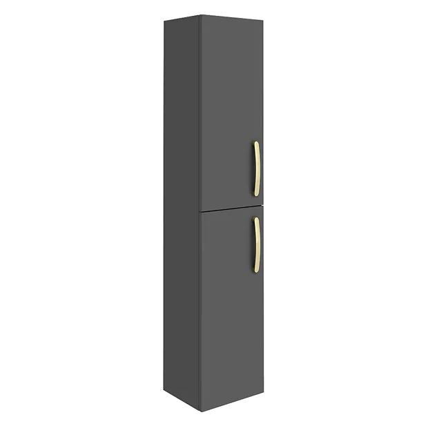 Klyn Bathroom Brooklyn Gloss Grey Wall Hung Tall Storage Cabinet With Brushed Brass Handles