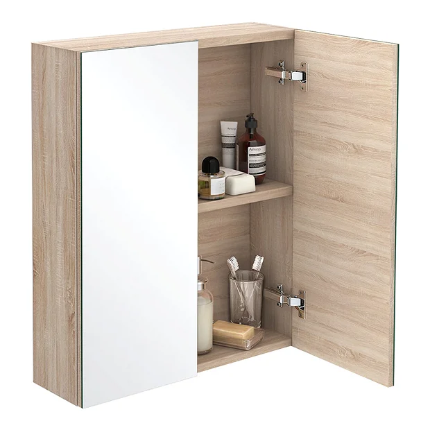 Brooklyn Natural Oak 600mm Bathroom Mirror Cabinet – 2 Door