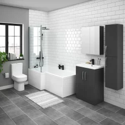 Store towels and other bits in narrow bathroom spaces with the practical Brooklyn Wall Hung Tall Storage Cabinet. This contemporary tallboy bathroom cabinet has an attractive jet black textured wood effect, creating a chic look. Behind two soft closing doors you’ll find three handy shelves for your toiletries, electronics and flannels. This unit is part of the Brooklyn range – why not coordinate with the Brooklyn Black Vanity Unit to create a sense of cohesion? For your convenience, the Brooklyn bathroom cabinet also comes with wall fixings to make fitting quick and easy.