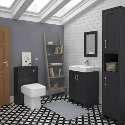 Chatsworth Graphite 2-Door Mirror Cabinet – 690mm Wide With Matt Black Handles