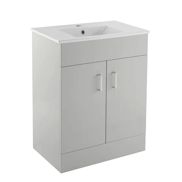 - Add cool contemporary style to your bathroom with this gloss light grey vanity unit