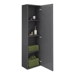 From the modular family the Apollo2 range creates a modern and clean look, this stunning 1435mm high wall hung tall unit features a gloss grey finish and a square matt black handle. Suitable for small or medium sized bathrooms.