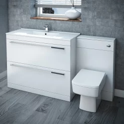 The sleek slimline white gloss Cello bathroom suite, features a contemporary streamlined look with beautiful clean lines providing your bathroom with the ultimate space saving solution, features a modern shower bath which allows showering and bathing space in the bathroom.
