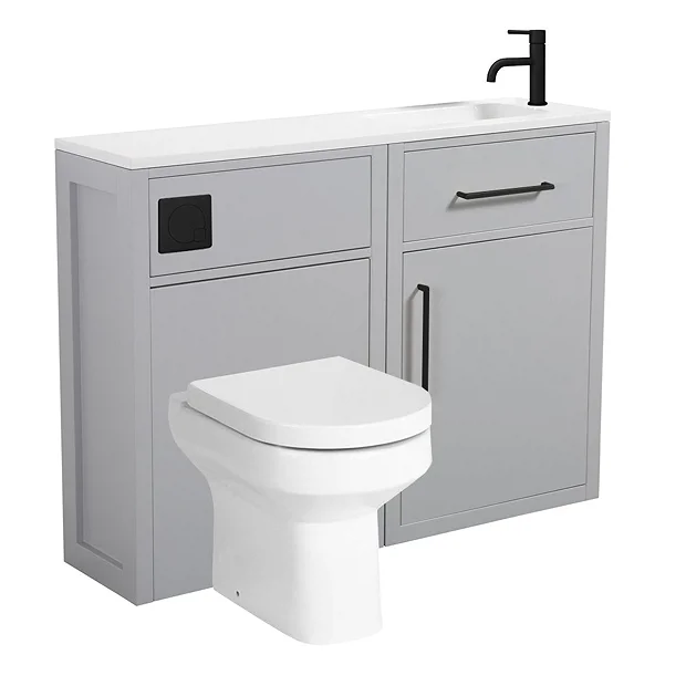 Montrose Slimline Combination Vanity and WC Unit in Dove Grey with Matt Black Handles, Straight Reversible Stone Resin Basin, Modern Pan, Concealed Cistern and Flush