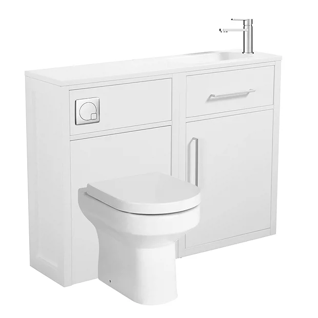 Montrose Slimline Combination Vanity and WC Unit in Pure White with Chrome Handles, Straight Reversible Stone Resin Basin, Modern Pan, Concealed Cistern and Flush